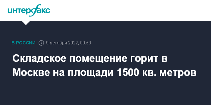 Москва. 9 декабря. INTERFAX.RU - Огонь охватил складское здание на площади 1500 кв. метров в Москве, сообщили "Интерфаксу" в пресс-службе МЧС России в пятницу.