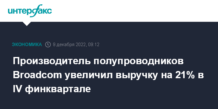 Москва. 9 декабря. INTERFAX.RU - Американская Broadcom Inc., один из крупнейших мировых производителей полупроводниковой продукции, в четвертом квартале 2022 финансового года увеличила чистую прибыль и выручку, а также объявила о возобновлении программы выкупа акций и о повышении квартальных дивидендов.