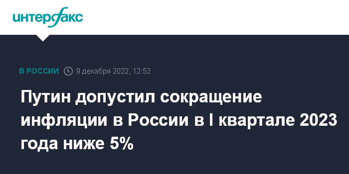 Путин допустил сокращение инфляции в России в I квартале 2023 года ниже 5%