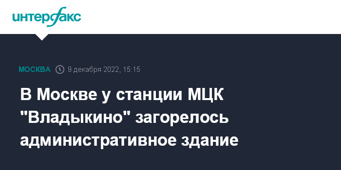 Москва. 9 декабря. INTERFAX.RU - В Москве произошел пожар рядом со станцией МЦК "Владыкино", на прилегающей к станции территории загорелось административное здание, сообщил городской Департамент транспорта.