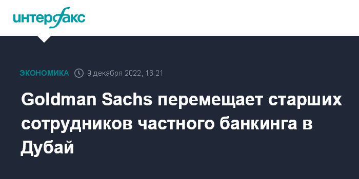 Москва. 9 декабря. INTERFAX.RU - Американский банк Goldman Sachs Group Inc. активно переводит старших сотрудников подразделения частного банкинга в Дубай для увеличения присутствия в этом ближневосточном городе, который все больше привлекает состоятельных людей.