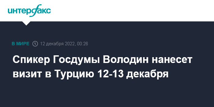 Спикер Госдумы Володин нанесет визит в Турцию 12-13 декабря