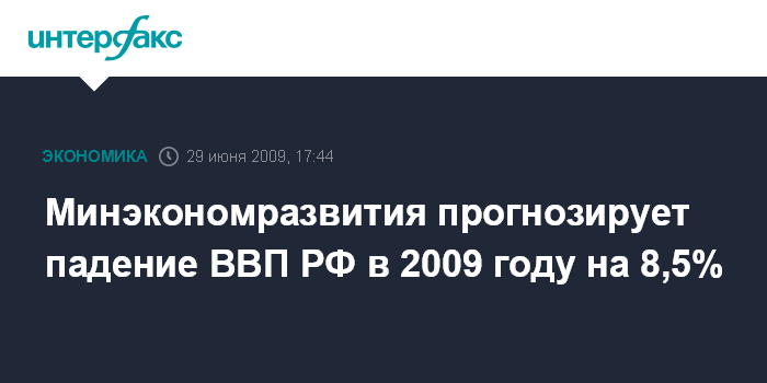 Минэкономразвития прогнозирует падение ВВП РФ в 2009 году на 8,5%