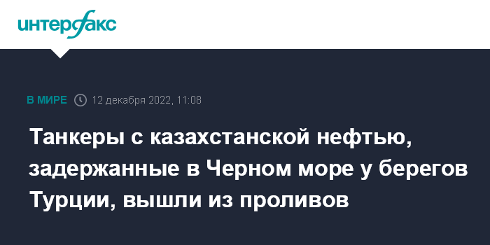 Ранее агентство Bloomberg сообщало, что танкеры с казахстанской нефтью не могут покинуть Черное море и добраться до мировых рынков, поскольку Турция требует доказательств того, что они должным образом застрахованы.