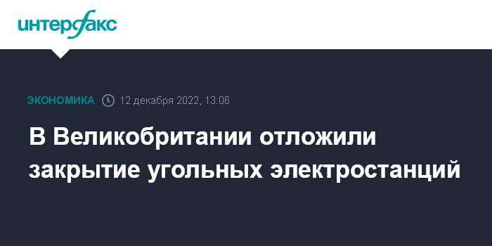Москва. 12 декабря. INTERFAX.RU - Операторы британских энергосетей откладывают планировавшееся закрытие угольных электростанций, чтобы они смогли послужить резервным источником энергии в случае проблем в энергетике Великобритании этой зимой, сообщает Bloomberg.