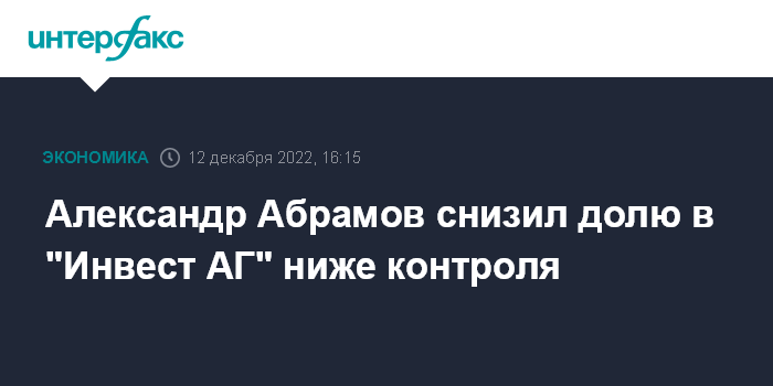 Александр Абрамов снизил долю в "Инвест АГ" ниже контроля