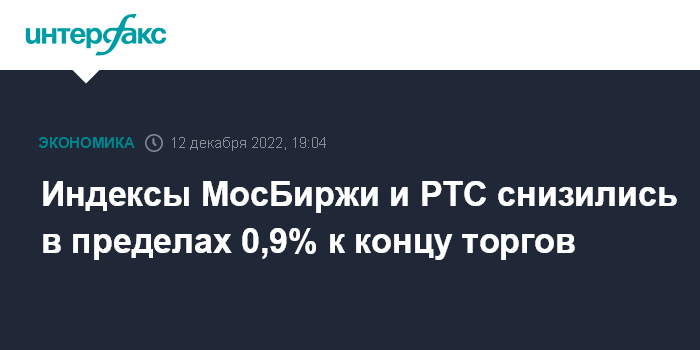 Индексы МосБиржи и РТС снизились в пределах 0,9% к концу торгов