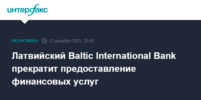 Решение КРФК предусматривает, что 12 декабря в 18:00 по местному времени банк должен полностью прекратить оказание финансовых услуг, в том числе выполнение платежей клиентов. Это означает, что с этого момента работа карт, интернет-банкинга и платежи Baltic International Bank приостановлены. Это должно предотвратить отток средств из банка и защитить интересы его клиентов и кредиторов, отмечается в сообщении.