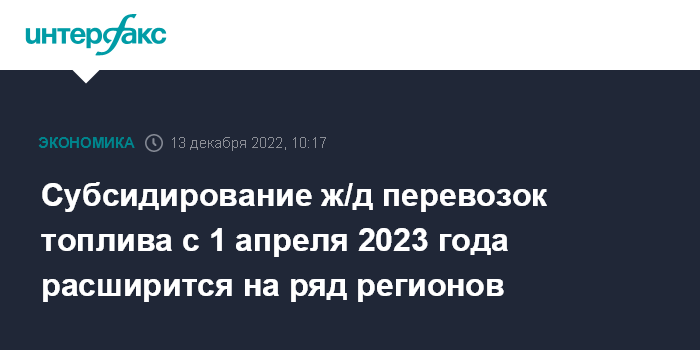 Москва. 13 декабря. INTERFAX.RU - Субсидирование поставок бензина, дизтоплива и керосина при перевозке железнодорожным транспортом с 1 апреля 2023 года расширится на ряд регионов, сообщает во вторник пресс-служба правительства.