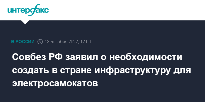 Совбез РФ заявил о необходимости создать в стране инфраструктуру для электросамокатов