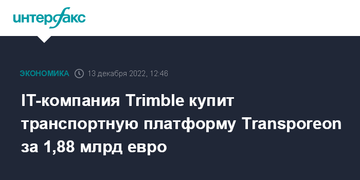 IT-компания Trimble купит транспортную платформу Transporeon за 1,88 млрд евро