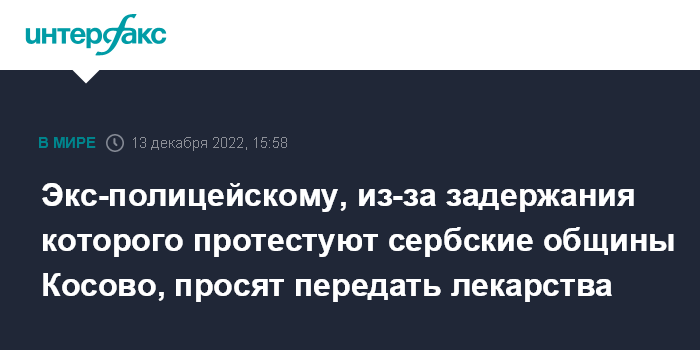 Экс-полицейскому, из-за задержания которого протестуют сербские общины Косово, просят передать лекарства