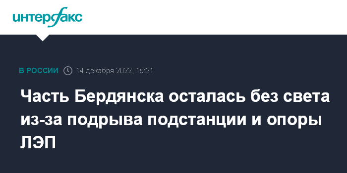 Часть Бердянска осталась без света из-за подрыва подстанции и опоры ЛЭП