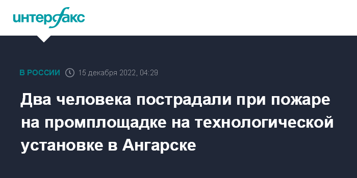 Москва. 15 декабря. INTERFAX.RU - Два человека пострадали в результате пожара на промплощадке на технологической установке в Ангарске, их доставили в медсанчасть №36, сообщил губернатор Иркутской области Игорь Кобзев в своем телеграм-канале.