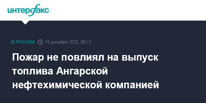 Москва. 15 декабря. INTERFAX.RU - Ангарская нефтехимическая компания (АНХК) продолжает выпуск топлива после пожара в четверг, сообщила пресс-служба АНХК.