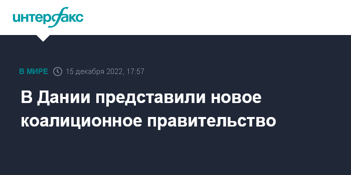 Москва. 15 декабря. INTERFAX.RU - Датский премьер Метте Фредериксен в четверг представила новое коалиционное центристское правительство, сформированное по итогам ноябрьских парламентских выборов, передает Associated Press.