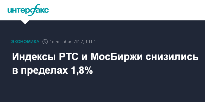 Индексы РТС и МосБиржи снизились в пределах 1,8%