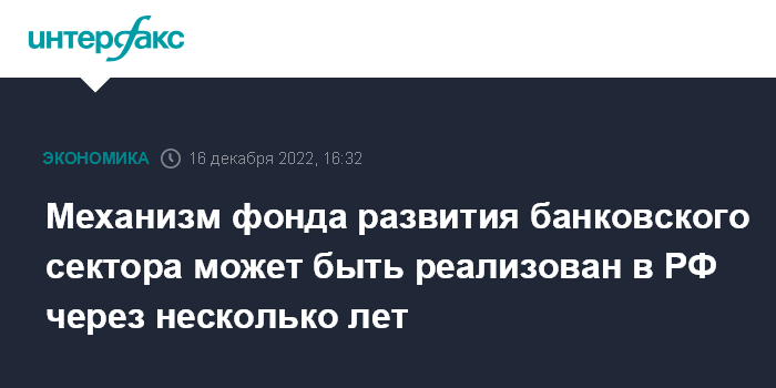 Механизм фонда развития банковского сектора может быть реализован в РФ через несколько лет