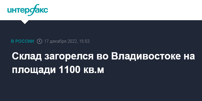 Москва. 17 декабря. INTERFAX.RU - Пожарные тушат огонь на площади 1100 кв.м на складе во Владивостоке, сообщает пресс-служба регионального ГУ МЧС.