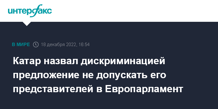 Москва. 18 декабря. INTERFAX.RU - Меры, предложенные Европарламентом (ЕП) против представителей Катара, в частности недопуск в здания ЕП, отрицательно скажутся на отношениях эмирата с ЕС и на дискуссии о международной энергобезопасности, заявил катарский дипломат.