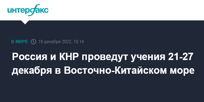 Россия и КНР проведут учения 21-27 декабря в Восточно-Китайском море