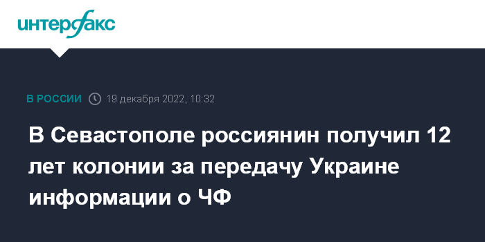 Москва. 19 декабря. INTERFAX.RU - Севастопольский суд приговорил к 12 годам колонии строгого режима россиянина Евгения Петрушина за госизмену в пользу Украины, сообщили в ФСБ России.
