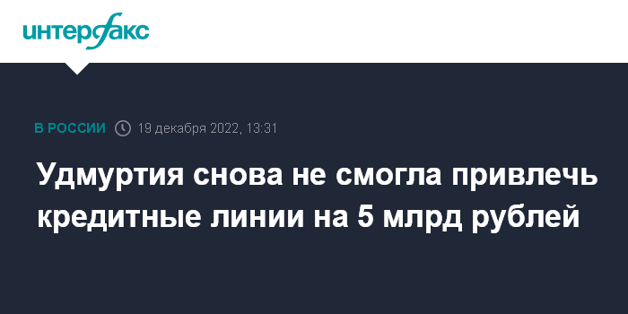 Удмуртия снова не смогла привлечь кредитные линии на 5 млрд рублей