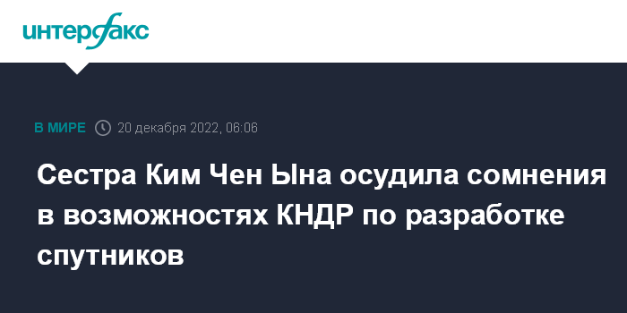 Москва. 20 декабря. INTERFAX.RU - Сестра северокорейского лидера Ким Чен Ына, заместитель заведующего отделом ЦК Трудовой партии Кореи Ким Е Чжон раскритиковала тех, кто ставит под сомнение утверждение КНДР о значительном прогрессе в разработке спутников и баллистических ракет большой дальности.