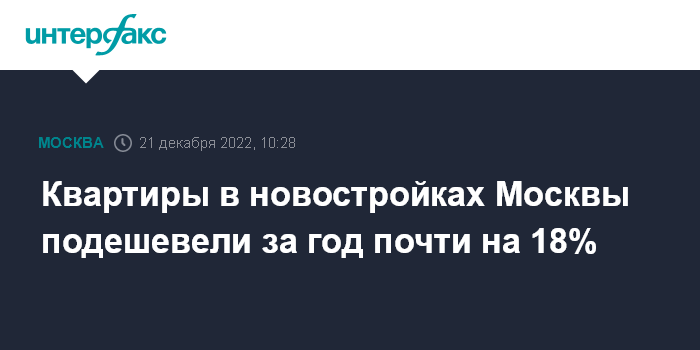 Квартиры в новостройках Москвы подешевели за год почти на 18%