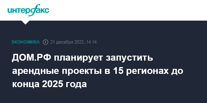 ДОМ.РФ планирует запустить арендные проекты в 15 регионах до конца 2025 года