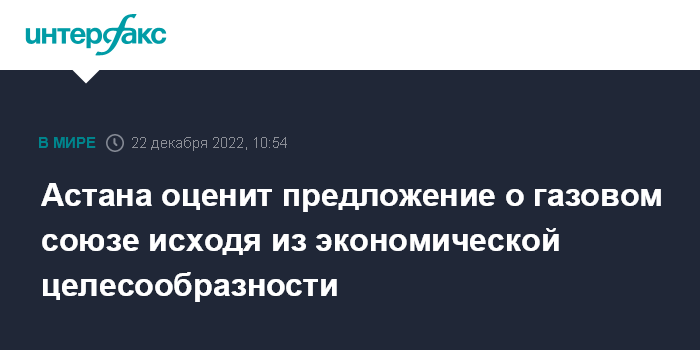 Москва. 22 декабря. INTERFAX.RU - Руководство Казахстана рассматривает предложение о создании газового союза с Россией и Узбекистаном только как коммерческое предложение по интегрированию рынков по поставке газа, сказал на пресс-конференции замглавы МИД республики Алмас Айдаров.