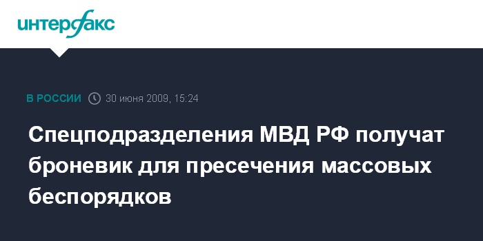 Спецподразделения МВД РФ получат броневик для пресечения массовых беспорядков