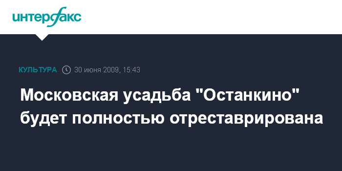Москва. 30 июня. INTERFAX.RU - Столичные власти приняли решение провести комплексную реставрацию усадьбы "Останкино", говорится в сообщении пресс-службы Комитета по культурному наследию Москвы (Москомнаследия).