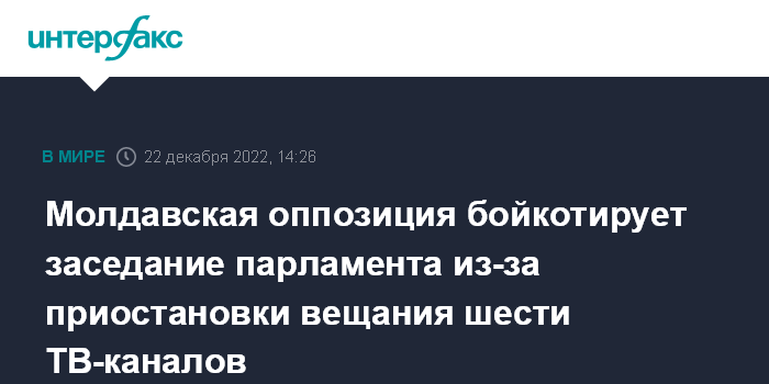 Москва. 22 декабря. INTERFAX.RU - Оппозиционная фракция Блока коммунистов и социалистов (БКС) бойкотирует в четверг заседание парламента Молдавии в знак протеста против приостановления вещания в республике шести телеканалов, ретранслировавших в основном российские программы.