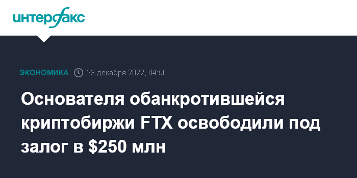 Москва. 23 декабря. INTERFAX.RU - Бывшего главного исполнительного директора криптовалютной биржи FTX Сэма Банкмана-Фрида в четверг освободили под залог в $250 млн после судебного заседания. Об этом пишет Axios.