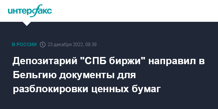 Депозитарий "СПБ биржи" направил в Бельгию документы для разблокировки ценных бумаг