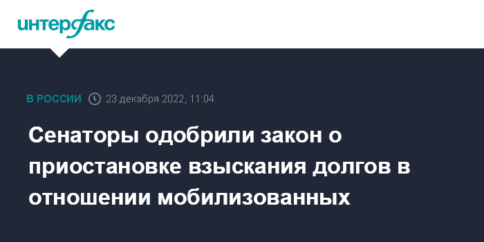 Сенаторы одобрили закон о приостановке взыскания долгов в отношении мобилизованных