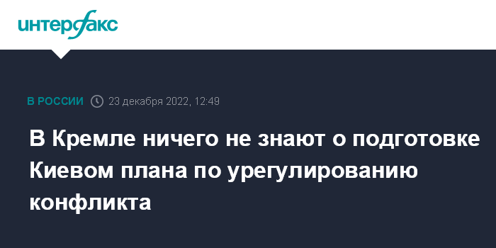Москва. 23 декабря. INTERFAX.RU - Ранее звучавшие заявления президента Украины Владимира Зеленского о шагах к мирному урегулированию конфликта не учитывали сложившиеся реалии, заявил пресс-секретарь президента РФ Дмитрий Песков; он также сообщил, что в Кремле не знают о подготовке Киевом плана по урегулированию конфликта.