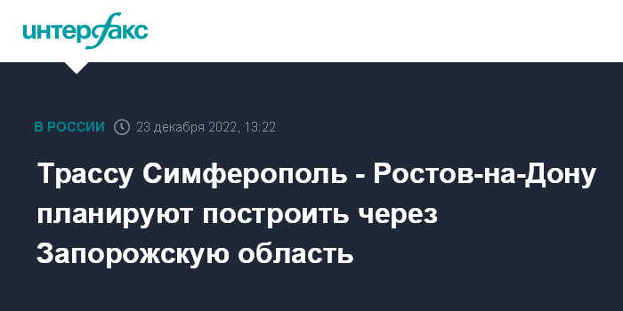 Москва. 23 декабря. INTERFAX.RU - Строительство четырехполосной трассы Симферополь - Ростов-на-Дону через Запорожскую область начнется в следующем году, ведется проектирование, сообщил врио губернатора области Евгений Балицкий.