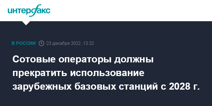 Сотовые операторы должны прекратить использование зарубежных базовых станций с 2028 г.