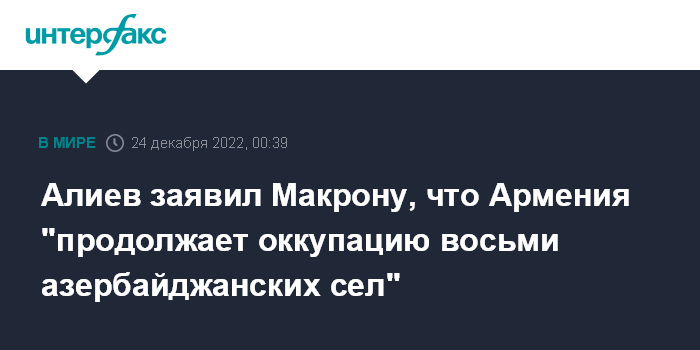 Алиев заявил Макрону, что Армения "продолжает оккупацию восьми азербайджанских сел"