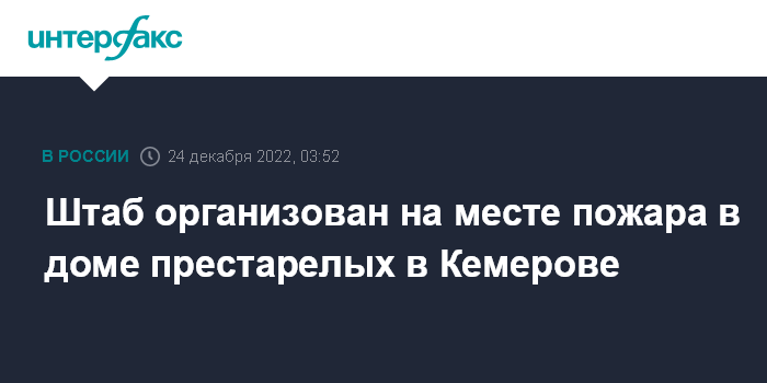 Москва. 24 декабря. INTERFAX.RU - Власти Кузбасса и надзорные органы организовали штаб на месте возгорания дома престарелых, при котором погибли 20 человек, сообщил корреспондент "Интерфакса" с места происшествия.