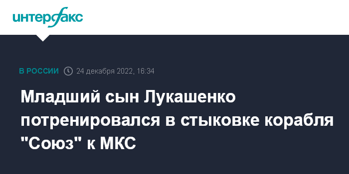 Москва. 24 декабря. INTERFAX.RU - Младший сын президента Белоруссии Александра Лукашенко Николай в субботу провел тренировку по стыковке корабля "Союз МС" к МКС во время посещения Центра подготовки космонавтов (ЦПК) имени Гагарина в Звездном городке.