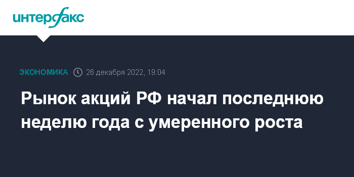 Рынок акций РФ начал последнюю неделю года с умеренного роста
