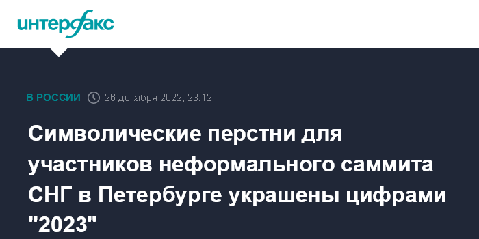 Символические перстни для участников неформального саммита СНГ в Петербурге украшены цифрами "2023"