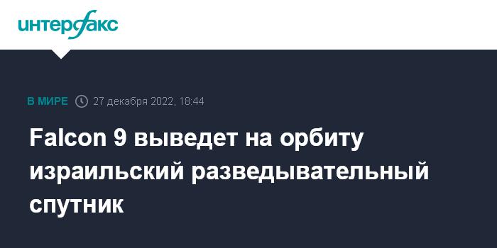 Falcon 9 выведет на орбиту израильский разведывательный спутник