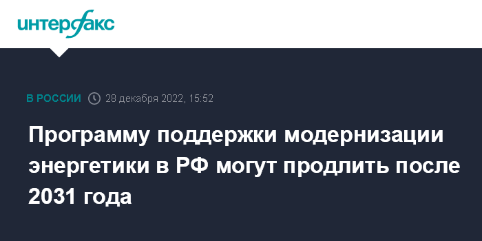 Программу поддержки модернизации энергетики в РФ могут продлить после 2031 года