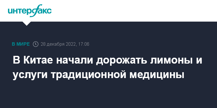 Кроме того, в стране отмечен резкий скачок спроса на лимоны, поскольку потребители пытаются укрепить иммунитет на фоне распространения вируса. Это спровоцировало повышение цен. Так, цена двух лимонов в одном продуктовом магазине в Пекине в декабре составила 13 юаней ($1,86), что примерно вдвое превышает обычный уровень.