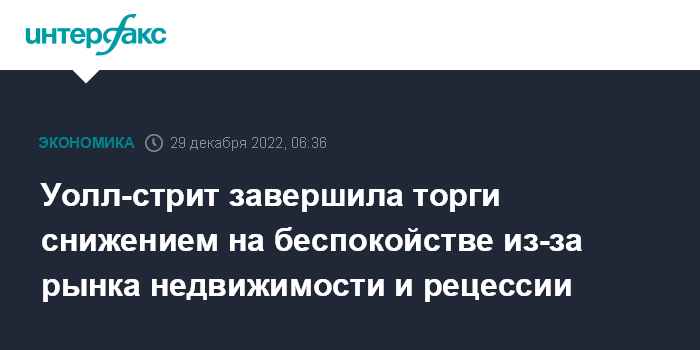 Уолл-стрит завершила торги снижением на беспокойстве из-за рынка недвижимости и рецессии