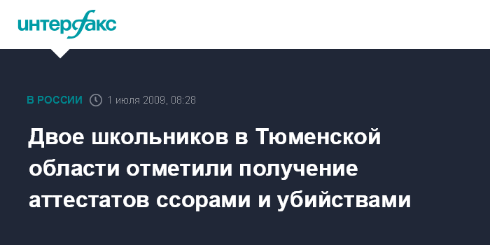 Двое школьников в Тюменской области отметили получение аттестатов ссорами и убийствами